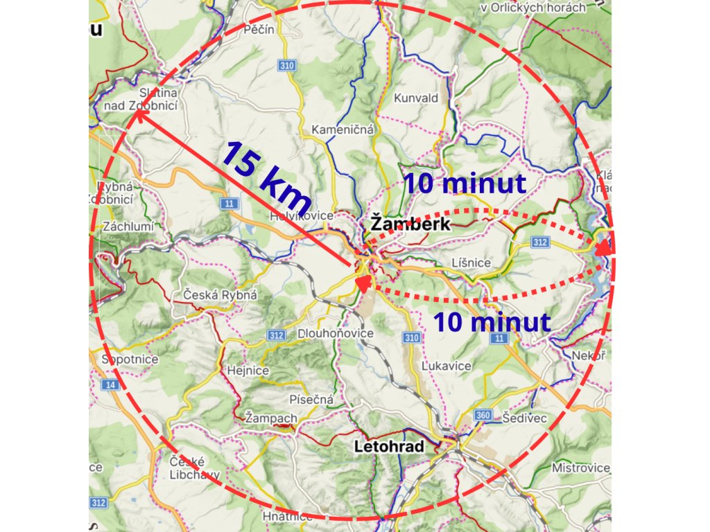 20 minut letu Vám umožní doletět nad nejbližší okolí Žambereckého letiště. Můžete si prohlédnout Pastvinskou přehradu s její kamennou hrází a mnoha skrytými zátokami, dolétnete nad Letohrad s jeho krásným náměstím a zámeckým parkem nebo se můžete vydat nad romantickou zříceninu hradu Litice a oblétnete tajemný vrch Žampach s jeho mizejícími pozůstatky hradu.