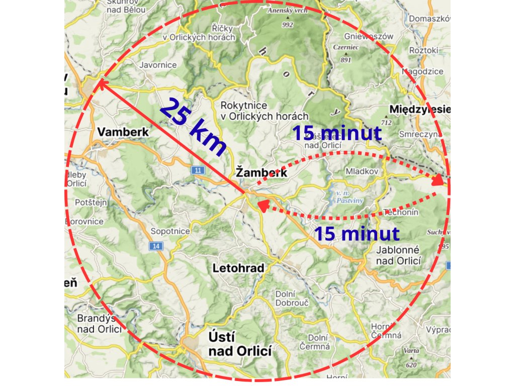 Během půlhodinového letu se můžete vydat přes Pastvinskou přehradu až nad Suchý vrch a Bukovou horu, odkud si můžete také vychutnat panorama masivu Králického Sněžníku. Na sever se dá dolétnout nad vrch Zakletý, kde můžete pozorovat sjezdovky a lanovku ve Ski areálu Říčky a cestou si třeba také prohlédnout areál vojenské tvrze Hanička. Pokud jste milovníky hradů a zámků, rozhodně se vydejte nad hrady Litice a Potštejn, které jsou zasazeny v romantické krajině Divoké Orlice, jejich siluety vás z ptačí perspektivy uchvátí!
